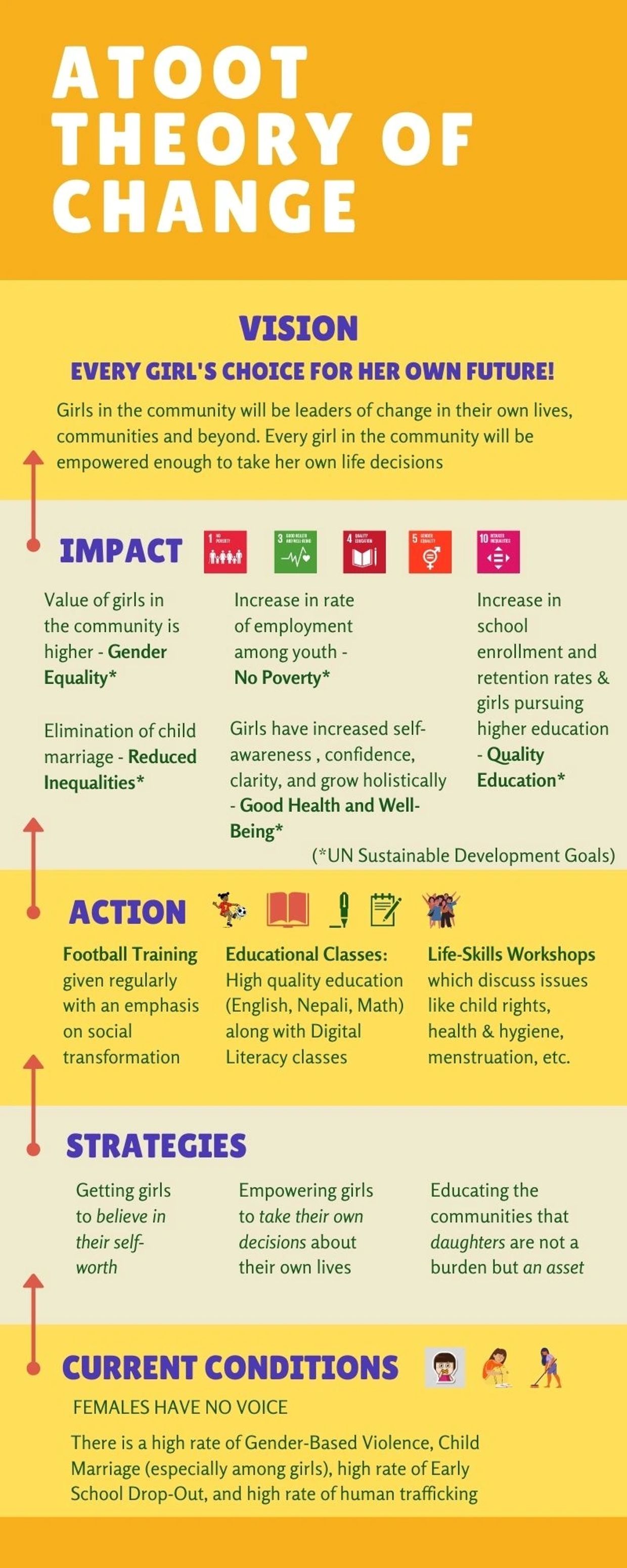 Atoot works towards the continuous improvement of the lives of the girls in the communities we work with. Atoot is constantly working for the overall good health, development and well-being of our girls through all aspects of our programming - Football (Soccer), Education, and Life-Skills Workshops.